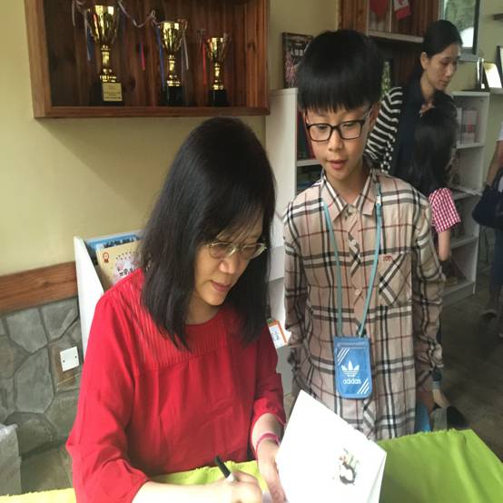 During her reading lecture Jiaqi Guan was full of energy and enthusiasm. She talked about her life experiences humorously, described her writing process, told the children that she had the dream of becoming a writer since childhood and that she likes writing diaries and letters. She loves to observe lifeespecially after she became a mother because her sonsDong Dong andDing Ding were the source of so much inspiration. She felt their innocence which enabled her to begin her children's literature journey.